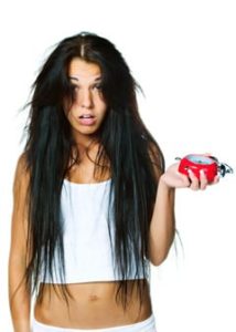 kona heldur á klukku